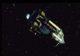 Versions of the robust craft were built many times over, and at various scales. More stock footage had to be prepared (Stabug flying, Starbug leaving Red Dwarf, Starbug coming back) plus some rather more special sections. Within one season, the new ship had been devastatingly crashed no less than three times!