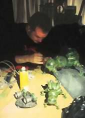 The monster was shot before a blue screen and added to the existing footage larger than its size (to save the building of a forty-foot armour-plated killing machine). One sequence, showing the monster bounding up behind the crew as the open a set of elevator doors, actually doubled up on the chromakey - the Dwarfers were shot in front of the bluescreen, then the monster, and the background image was placed behind that. (More bluescreen was used to insert Lister into stock footage of Adolf Hitler.)