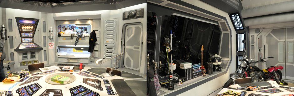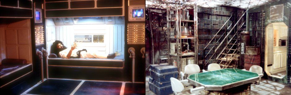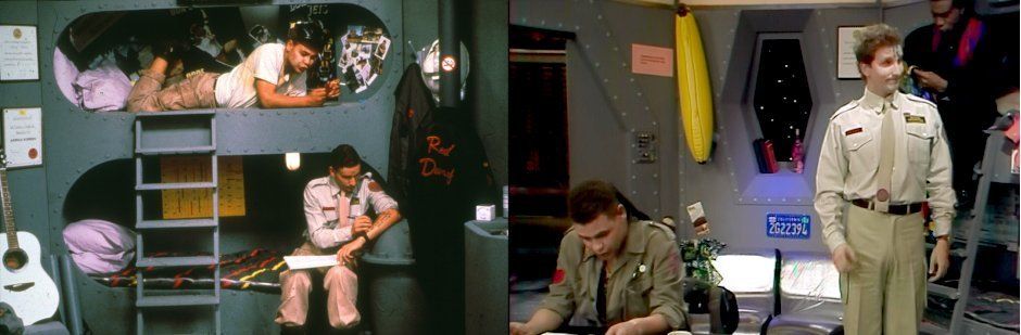 The colour and décor of that first bunkroom may not have been exactly what Rob and Doug had been hoping for - but what the set did do was to lay out a template for the show's "core" setting that would endure throughout nearly every series that followed. The layout of two bunks, Lister's above Rimmer's, with a table in the foreground, has so far survived all later incarnations of the main ship's bunkroom - and although the formula was altered for the Starbug-set Series VI and VII, even the prison cell of Series VIII was a direct homage to it.