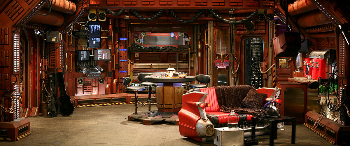 Despite the many changes Red Dwarf's set designs have gone through in the past three decades-plus, it's remarkable how throughout it all, it's possible to define a distinctly Red Dwarf "feel". Whether riveted submarine portholes or grungy red piping, crate-based roof grating or cutlery tray wall detail, octagonal doorways or stacked bunks - you know a Red Dwarf set when you see it, and you know it always feels like home.