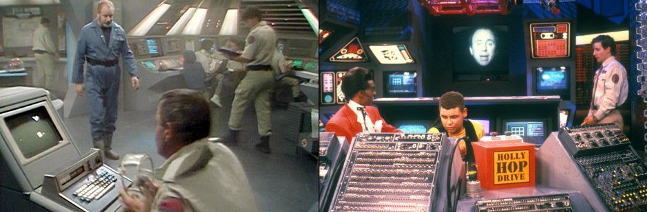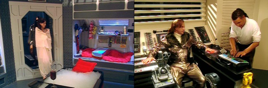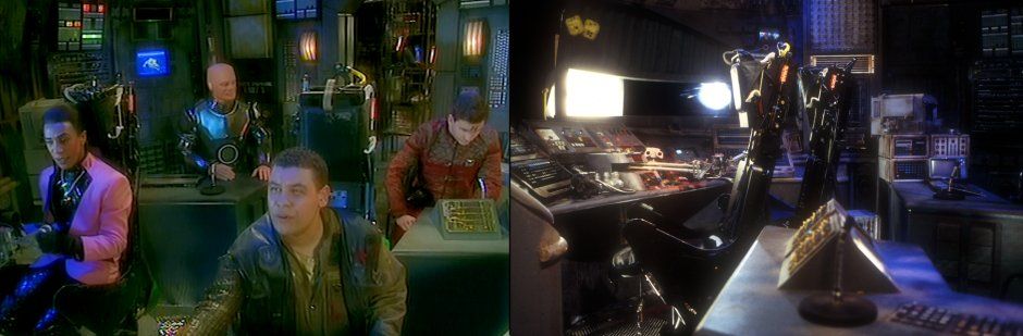 The bunkroom wasn't the only new ship-based set created for Series X - there was also, for the first time since Series II, a new Drive Room. This made for a handy alternative "base" location for scenes onboard the ship, and its four-seat configuration was reminiscent of Starbug and Blue Midget - indeed, a redressed version of the room doubled as the latter ship's cockpit in The Beginning.